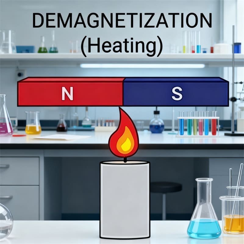 Das Erhitzen eines Magneten über seine Curie-Temperatur entfernt seinen Magnetismus vollständig, wird jedoch in der Regel nur in kontrollierten industriellen oder Recyclingprozessen angewendet, da der Magnet danach nicht wiederhergestellt werden kann.